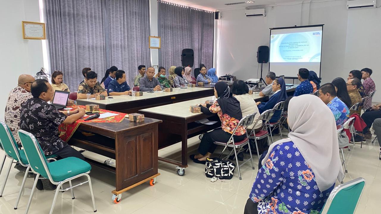 Sosialisasi membahas kewajiban penghasil Limbah B3 dalam merencanakan fasilitas penyimpanan LB3 untuk memperoleh Persetujuan Teknis (Pertek), penyusunan dokumen Standar Penyimpanan dan Rincian Teknis (Rintek) bagi usaha sesuai ketentuan perizinan lingkungan, serta persyaratan teknis yang harus tercantum dalam Rintek.